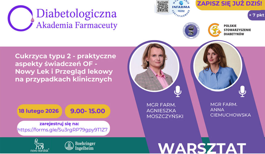 Warsztaty stacjonarne “Cukrzyca typu 2 – praktyczne aspekty świadczeń opieki farmaceutycznej” – 18 luty 2026 r.